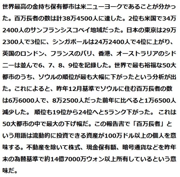 韓国に百万長者が4~50万人くらいいると思うんだけど