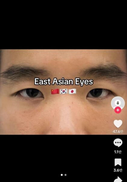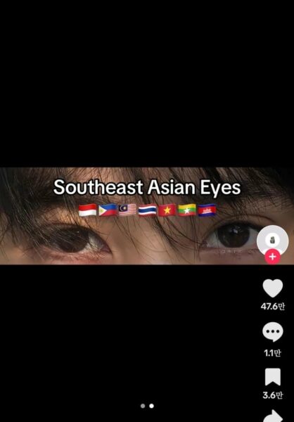 TikTokに東アジア vs 東南アジアの形で目の比較写真を掲載