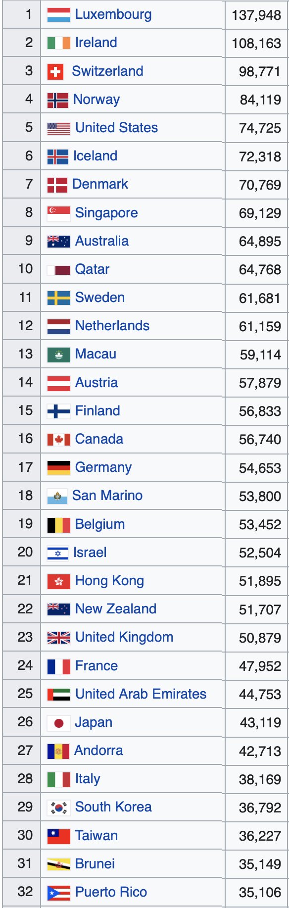 ルクセンブルク(豊かではあるけど)、アイルランド、アンドラのようなところは除かなくちゃ。