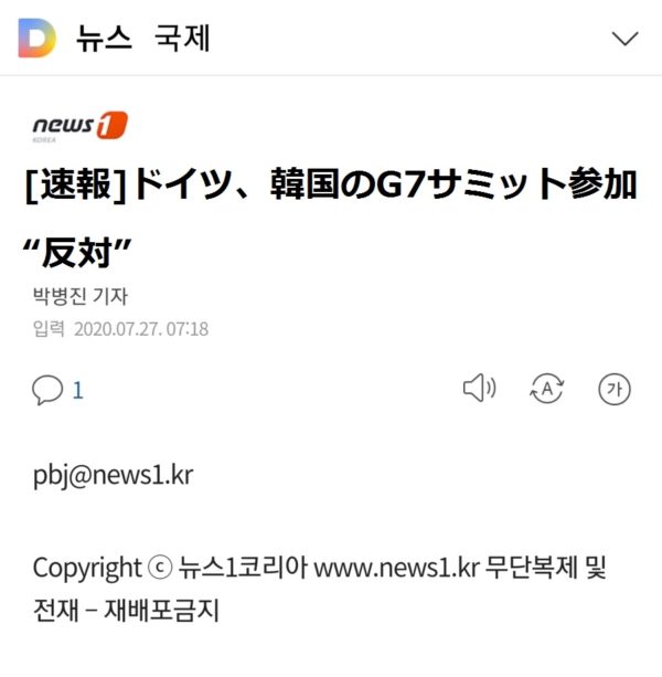 日本、G7拡大して韓国を参加させることに反対“表明”<共同>