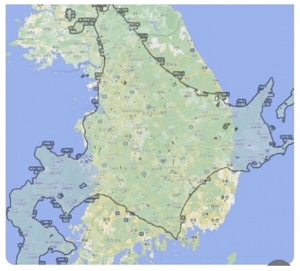 ヤツラの国では朝鮮半島を大きくして日本を小さくした地図ばかり使って、韓国は大国なのに小国日本に占領されていたと洗脳してきたからね。