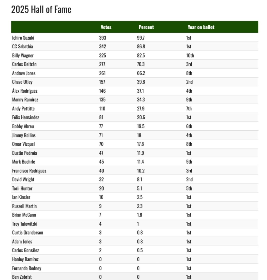 韓国人「今日発表された2025MLB殿堂入り候補者がこれ・・・日本のイチローとサバシアは確定と見てもいいよな?」→「俺のスターたち・・・」「一発殿堂入りは確定だけど満場一致はどうかな・・・」「記者団がマジでクソである」 新規候補者たち Image:cafe daum 再挑戦候補者たち Imag...