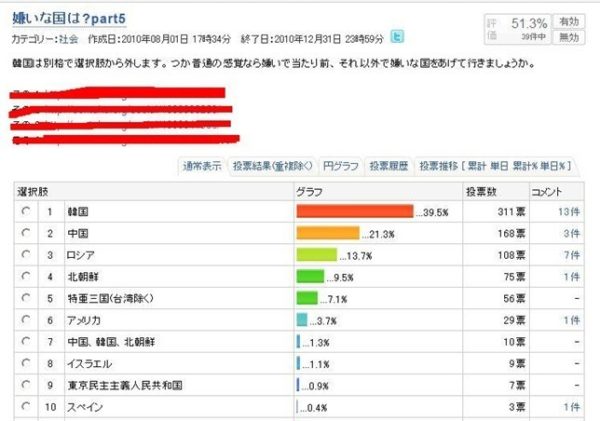 北朝鮮より圧倒的に嫌いというのはひどくないか・・・。