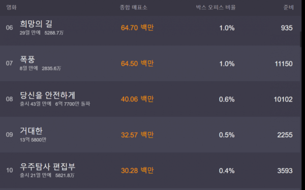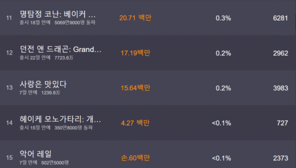 韓国人「日本が文化勝利・・・中国の興行収入ランキングの近況をご覧ください」→「文化先進国の底力なのか半端ないね」「コンテンツというのはマジで恐ろしいわ」