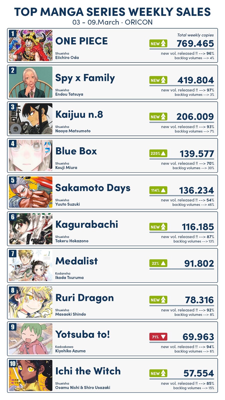 韓国人はアホなのでこれが単行本の週間売上(しかもオリコンの集計対象店舗のみ)なことに気付かず、このランキングが少なくとも数年間分の人気ランキングだと思い込んでる