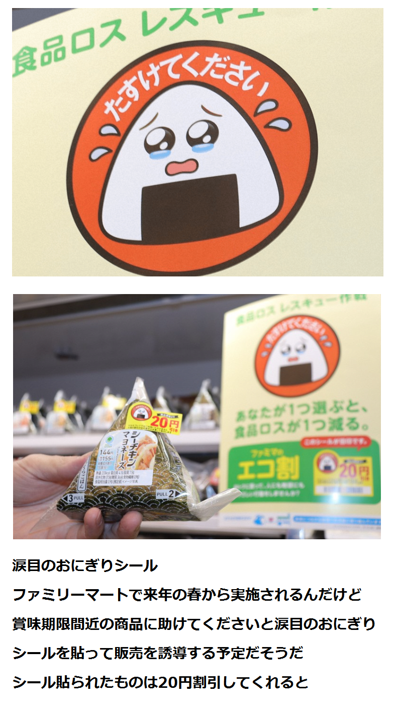 1ページ目の参考記事読むと分かるけど、これは元々の値引きシールよりおにぎりが涙ながらに訴えたほうが手にとってくれるお客さん増えるねってことなので…