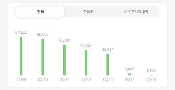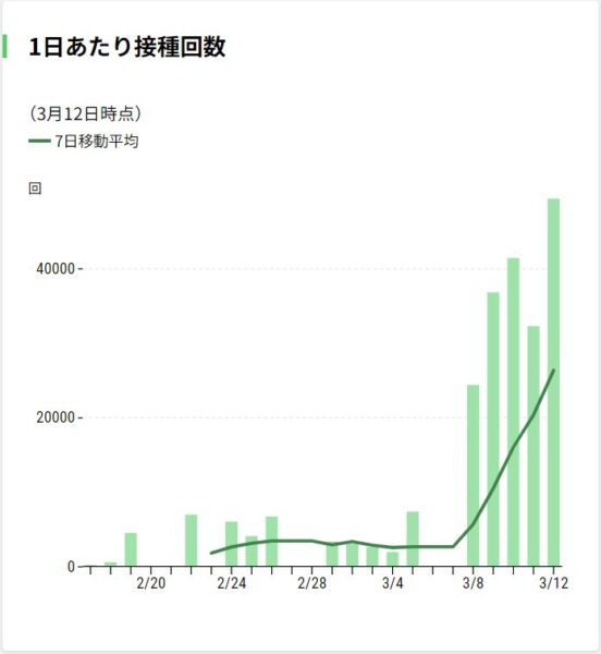 日本が先行接種が終わって本格接種始めると一日の接種人数が3月12日付で逆転される