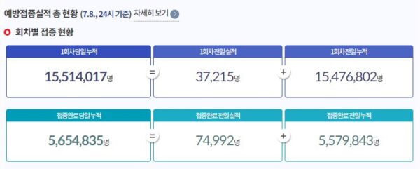 1次 15,514,017(+37,215) / 2次 5,654,835(+74,992)