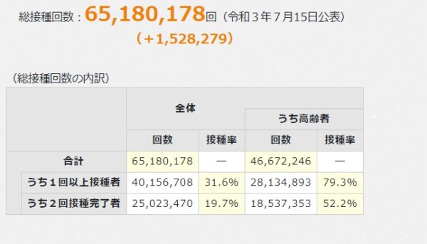 これが日本の公式接種数が出てくる首相官邸サイトなんだけど