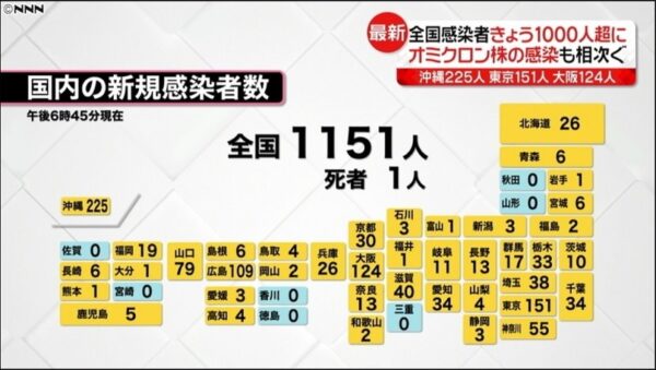 【速報】新型コロナ 全国の感染者数が1000人超 およそ3カ月ぶり