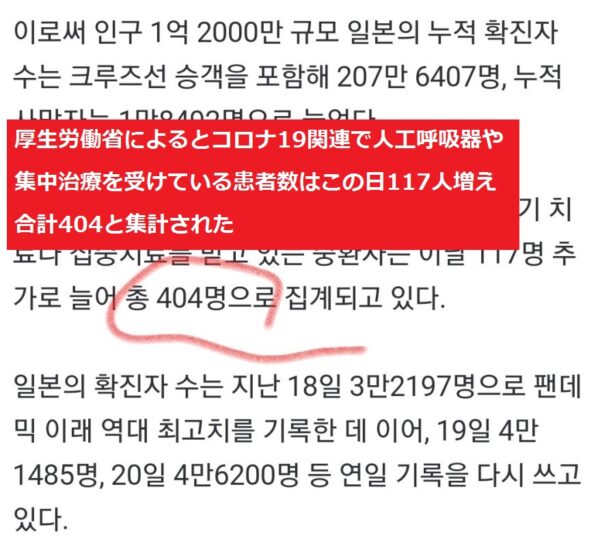 韓国人「日本、新規感染者4万人突破(ブルブル)でも入院率はデルタの時より下がった模様」