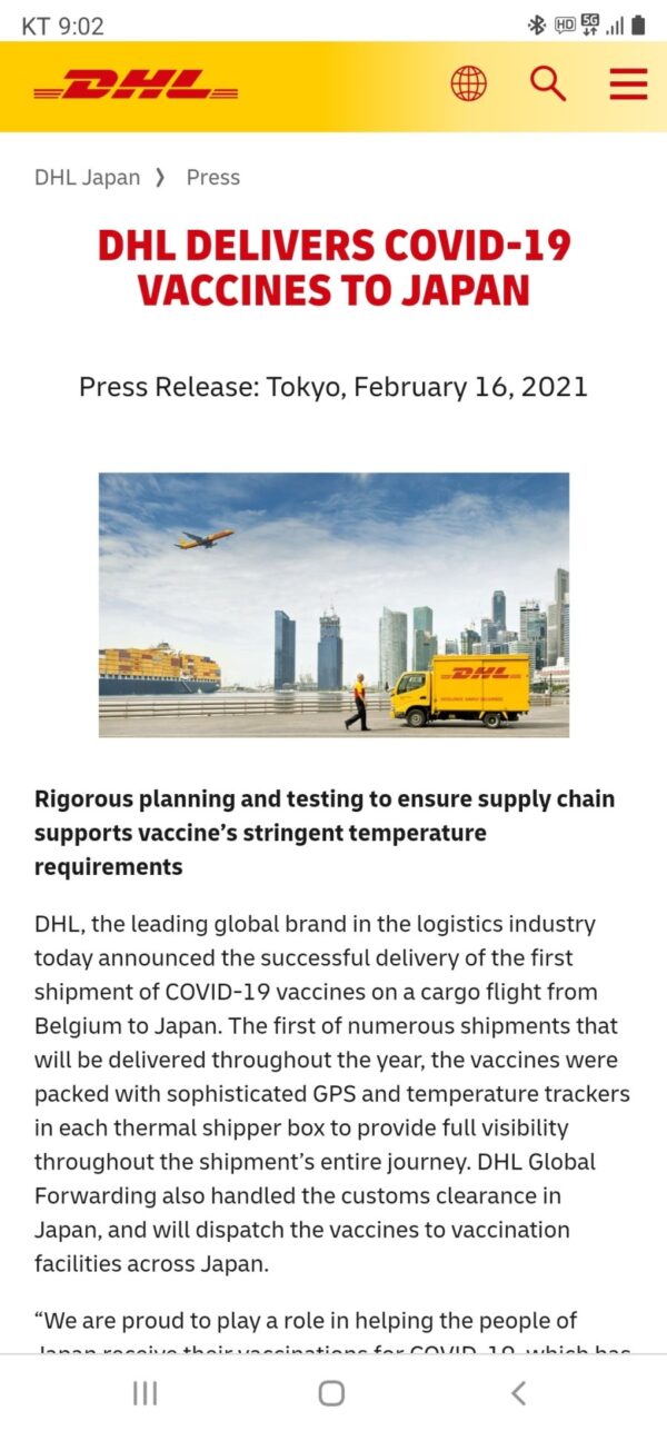 日本はワクチン輸送をDHLに委託したみたいだね(ブルブル)