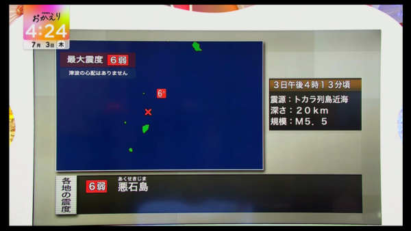悪石島が6弱で少し離れた隣の奄美大島が3だもんな。大陸プレート型じゃなくてトラフ断層だから