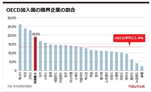 要約すれば営業利益で利子措置もできず経営不振企業の割合が全世界下位圏で多くないということだ