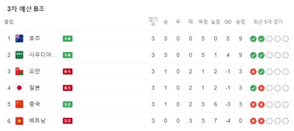 もうオーストラリアにも負けたらグループ1位は無理なようだ。