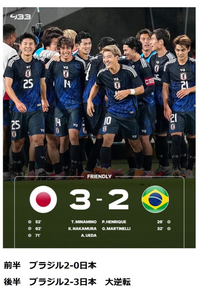 日本 3-2 ブラジル