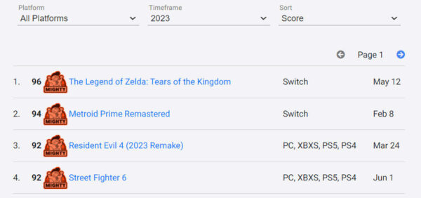 ストリートファイター6が2023年発売作オープンクリティック評点ランキング4位を記録