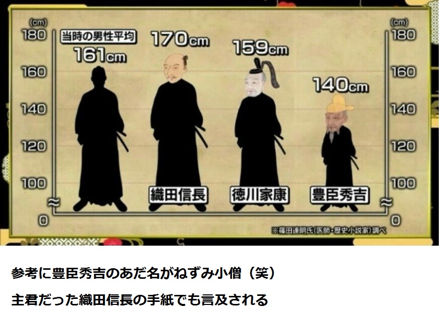 韓国人「日本の豊臣秀吉の身長と当時の日本男性の平均身長をご覧ください」→「クソッ、あんな奴らに・・・」「秀吉の息子の身長は190cmを超えてたそうだが」「あいつらの歴史記録は相当数が嘘だから・・・」