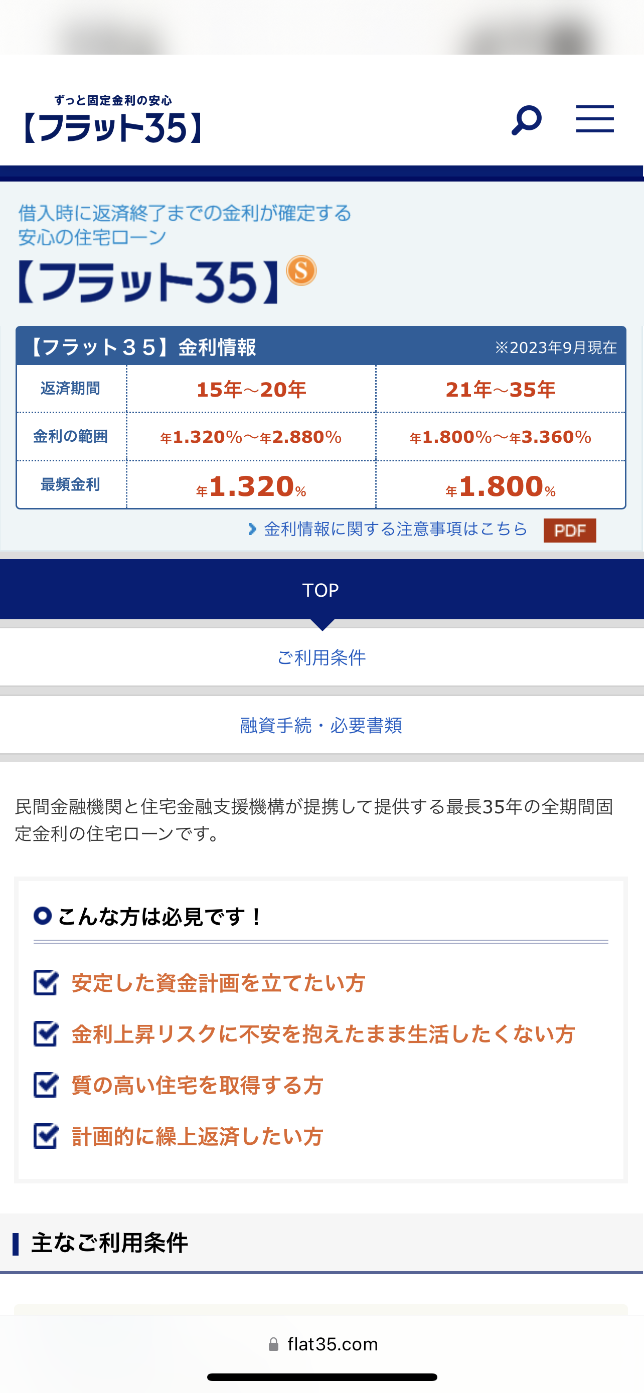 フラット35 15~20年(金利の範囲 年1.32~2.88%)