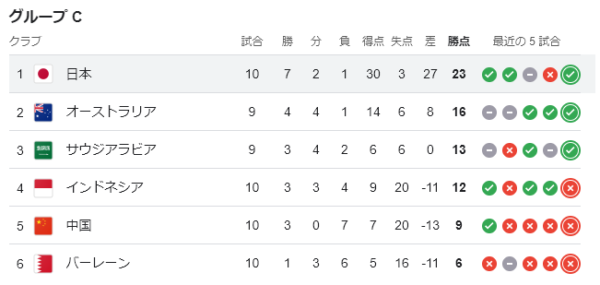 日本より弱いグループで日本より勝ち点とれず、4分だし