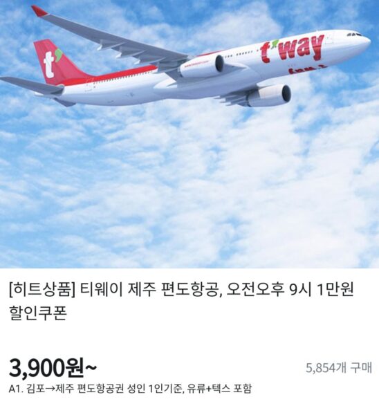 ティーウェイ航空 金浦(ソウル)→済州 片道航空券 大人1人基準
