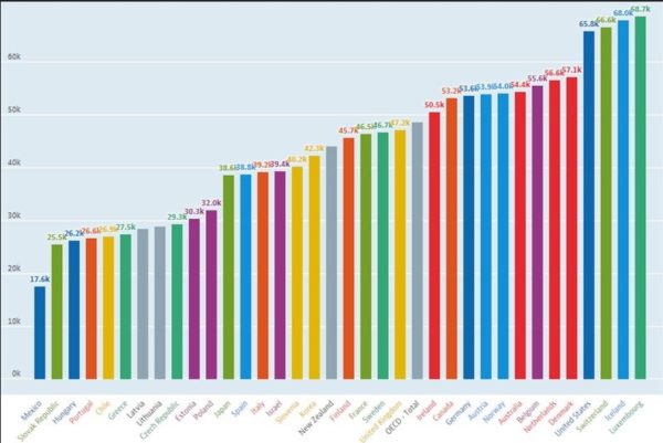 韓国の平均賃金4万2300ドル・・・OECD35ヶ国中19位