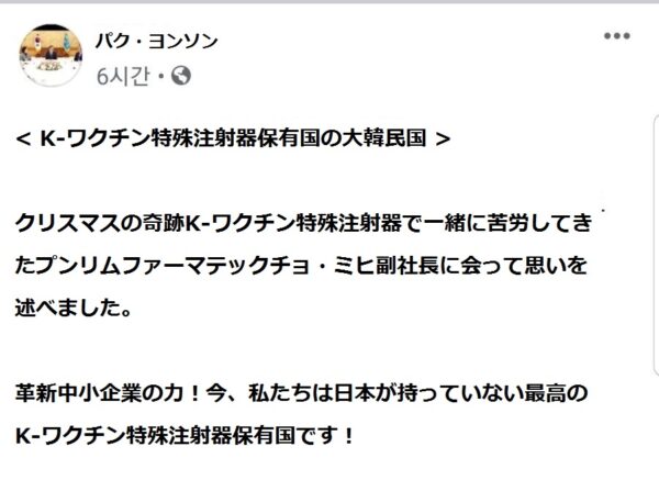 韓国はファイザーの認証を受けていない注射器を300億ウォン安いからと言って4000万個だけ買って認証を受けた注射器は買わない予定。