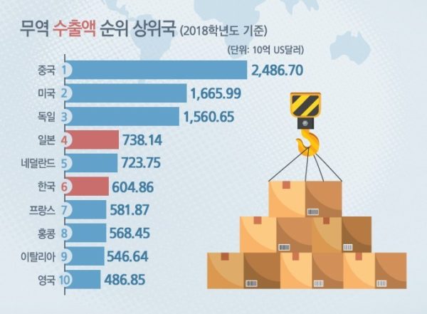 見ろよ、貿易割合が70%である韓国と30%である日本の輸出を比べるのか?wwwww