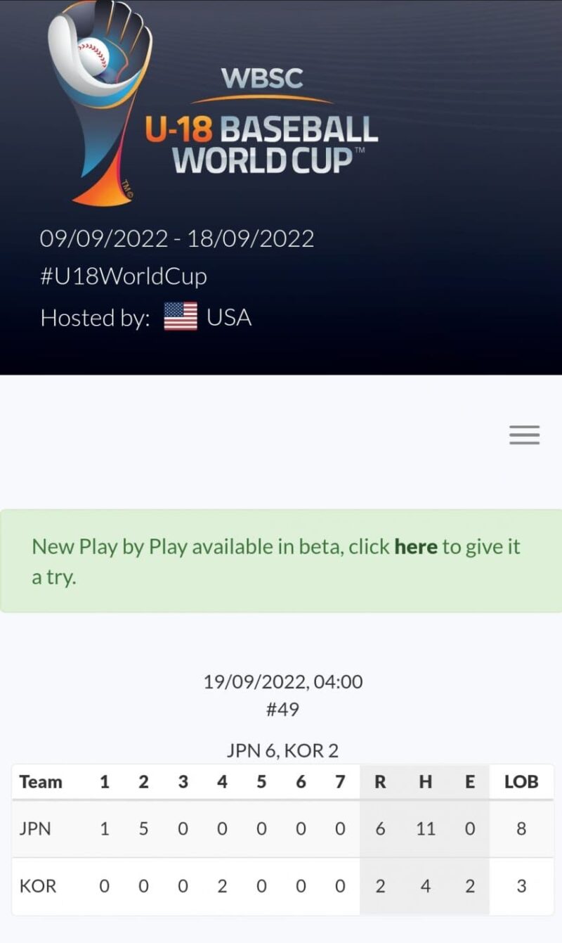 韓国人「韓国、日本に敗れる・・・U18野球W杯の最終結果をご覧ください」→「最悪の結果だw」「キム・ソヒョンが思ったよりダメだったね」