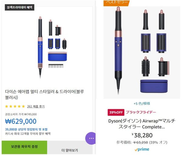日本ダイソン公式サイトのブラックフライデーで売ってるものは韓国と価格差がほとんどない