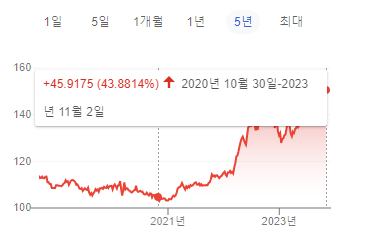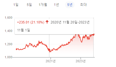 ドル-ウォンだいたい3年間で21%上昇