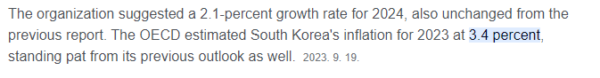 2023年韓国のインフレ率3.4%