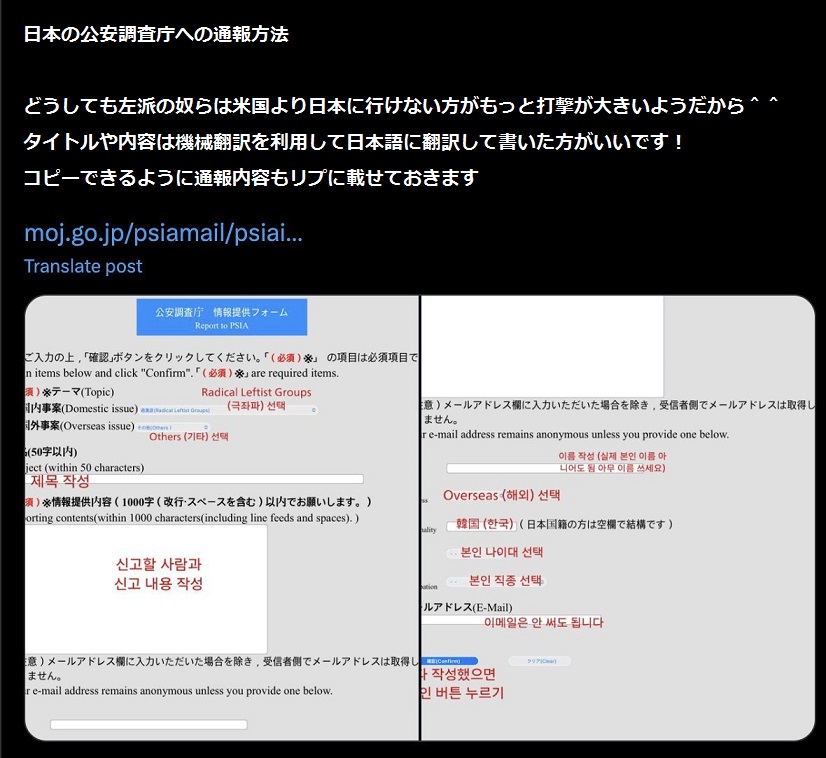 2.○○○は反日感情の濃い極左派の人で、尹錫悦弾劾デモに積極的に参加した動きを見せました。反日感情が濃い○○○が日本国内に出回れば日本人たちにもとても脅威になりそうです。