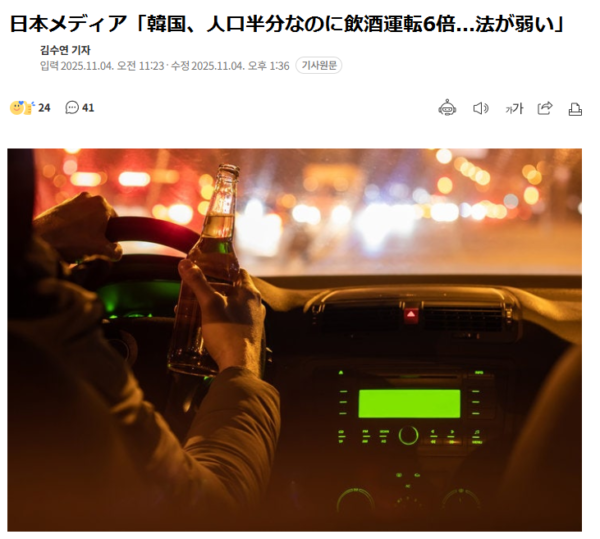 韓国人「日本、自国と比較しながら再び韓国を攻撃開始・・・」→「これは韓国が悪い」「頼むからもっと殴ってくれ」【飲酒運転事故】