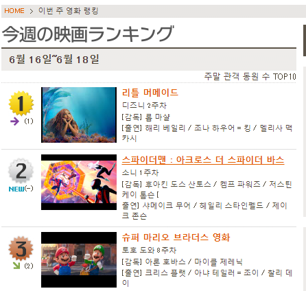1位 リトル・マーメイド / →1 (2週目)