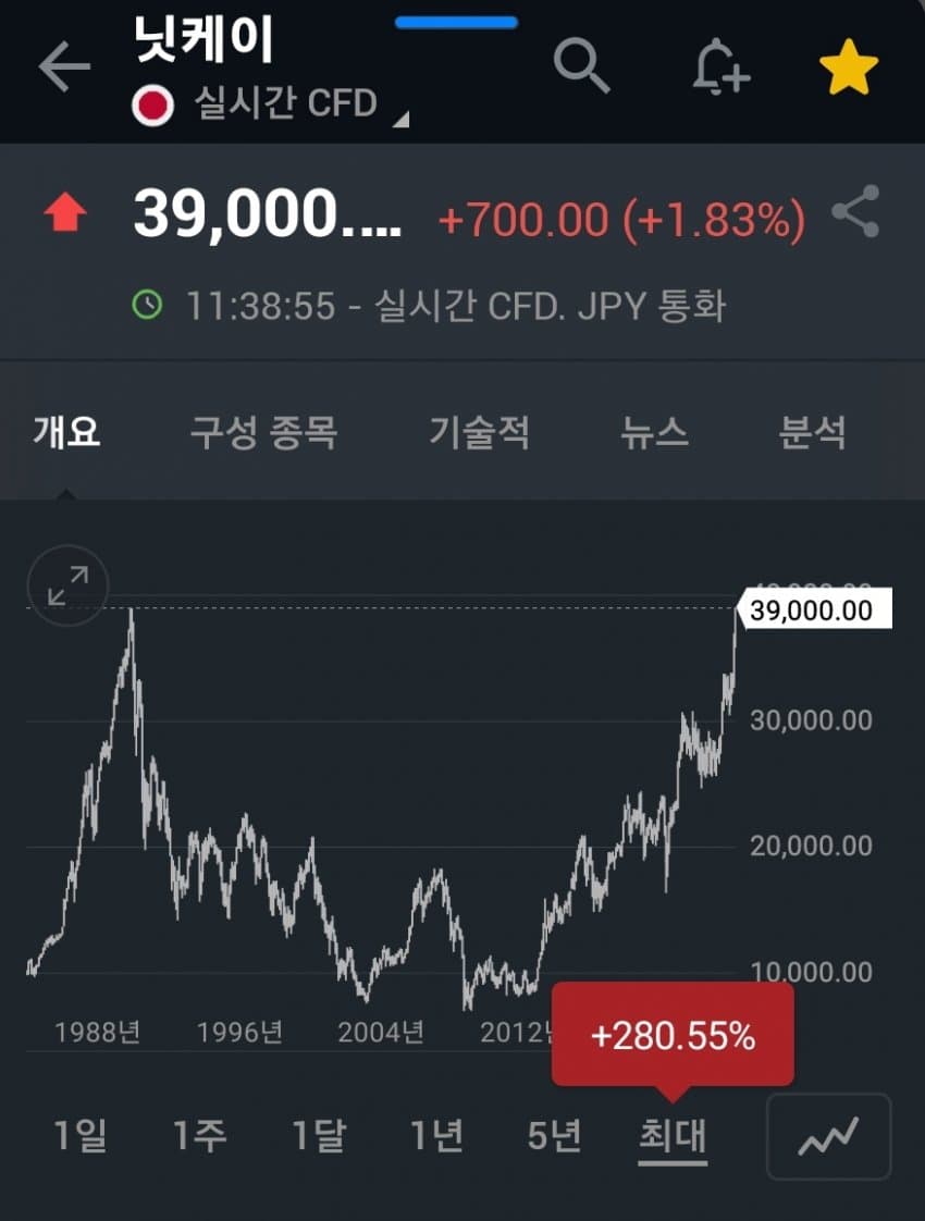 【速報】日経平均株価が史上最高値を更新 1989年12月の3万8915円87銭を超える #FNNプライムオンライン https://t.co/HkTlznXgEh