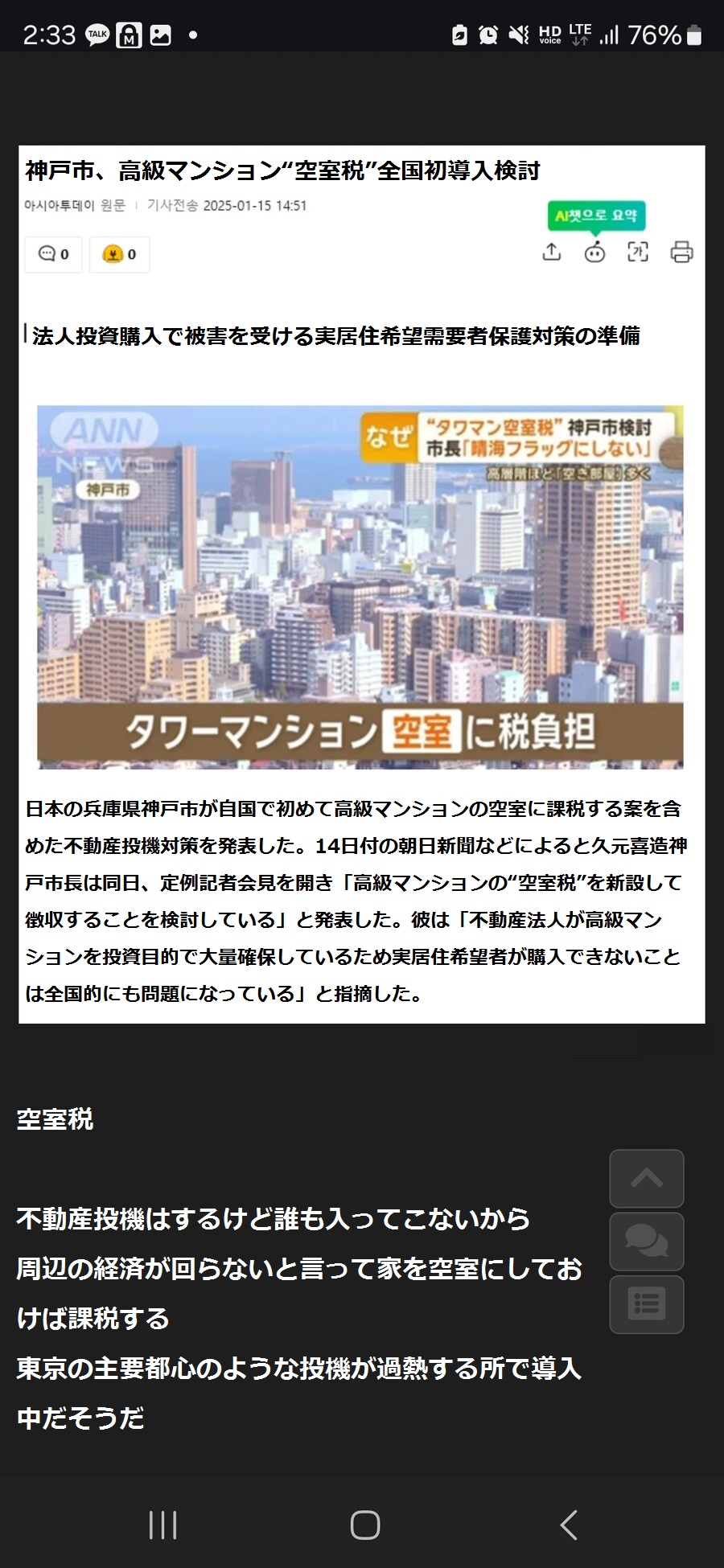 >「不動産投機対策で日本が導入した税金をご覧ください」→「韓国は幸いだよ 隣の国に答案用紙があってw」