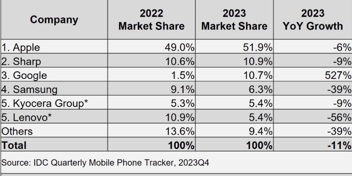 GoogleのPixelって中身というか本体はサムスン製でしょ。だから実際には逆にサムスンのシェアは増えてんじゃん。