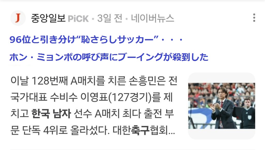 韓国人「FIFAランキング23位の韓国、98位のパレスチナと引き分け」