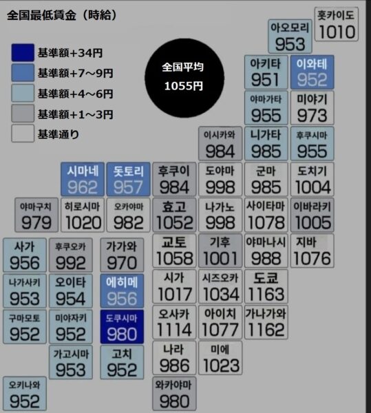 国民たちはバカではないので次第に若い人口は時給の高い地域に遠征し、時給の低い地域はますます立ち後れた田舎に変わっている