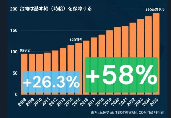 台湾の最低時給はここ数年でものすごく上げたりもしたし、あいつらは週休手当がないともいうね