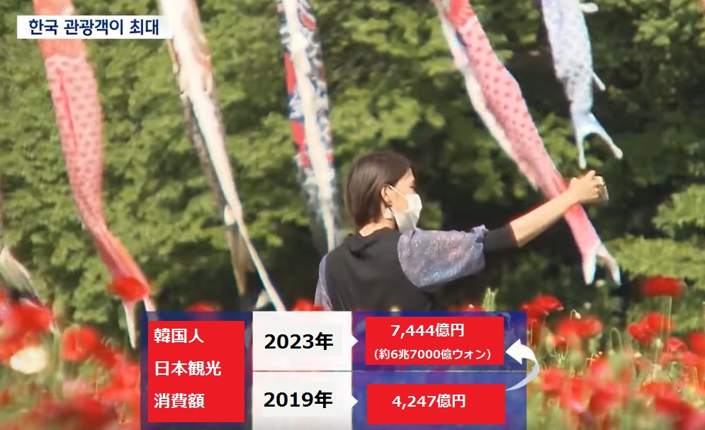 令和5年(2023)韓国人が日本国で消費した額7444億円か。