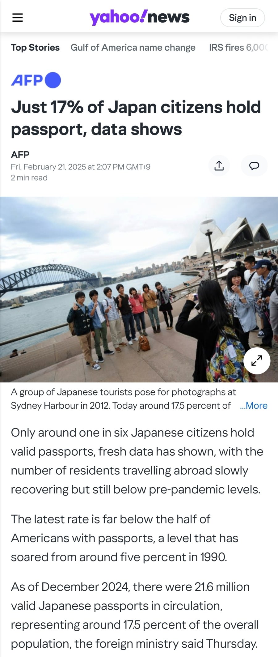 海外「昔と違う」世界最強と名高い日本のパスポートを所有している日本人の割合(海外の反応)
