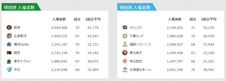 MLBにも劣らない観客数のNPBと、NPBで一番観客数が少ない西部よりも観客数が少ないKBO最多w