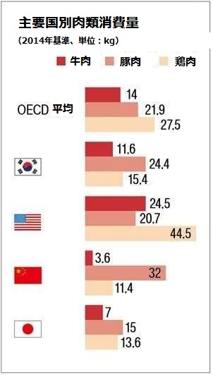 平均すらもない鶏肉の消費量。
