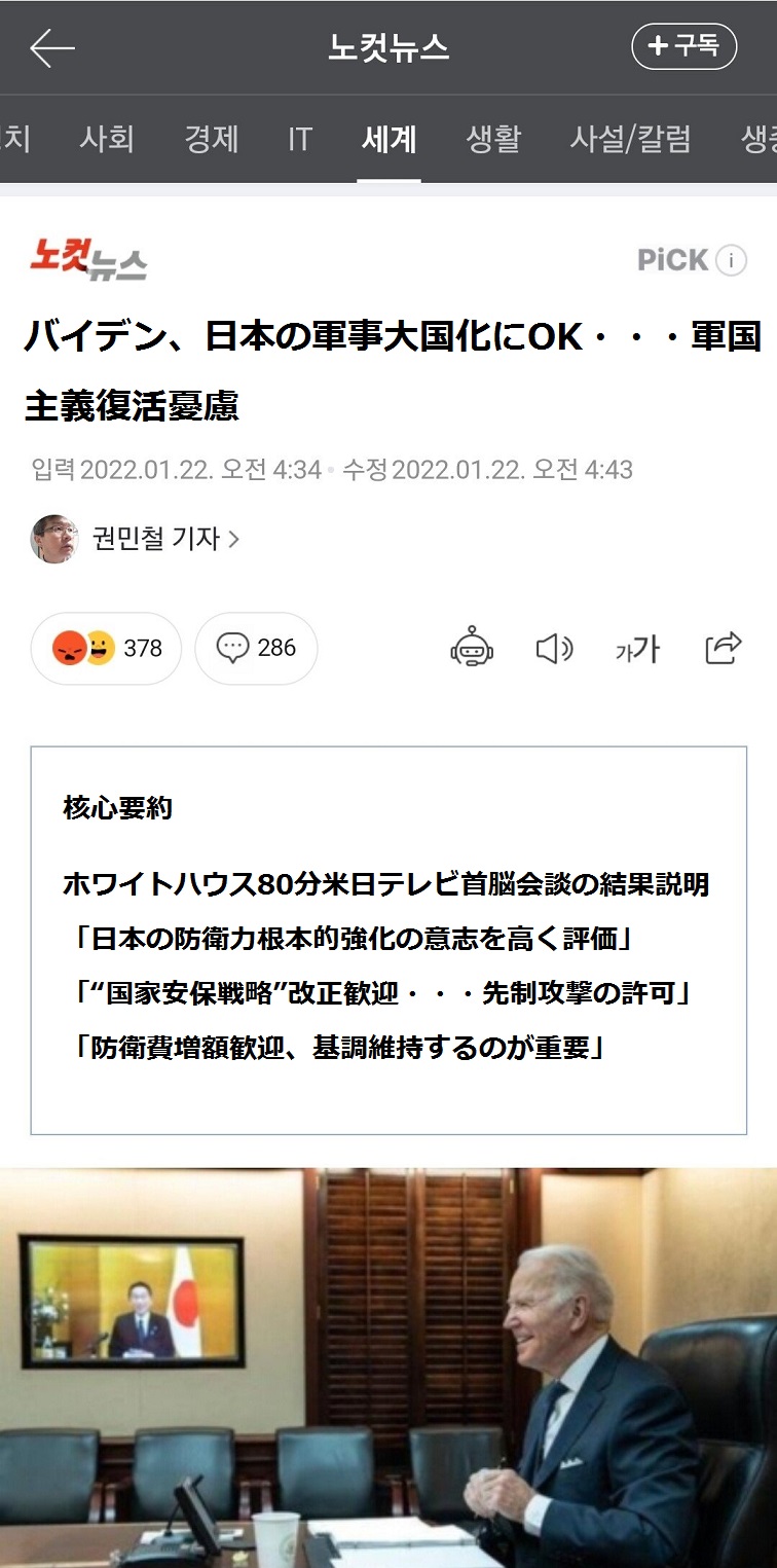 特に注目する点はホワイトハウスの報道資料で岸田の「日本軍事大国化意志」をバイデンが歓迎したということ