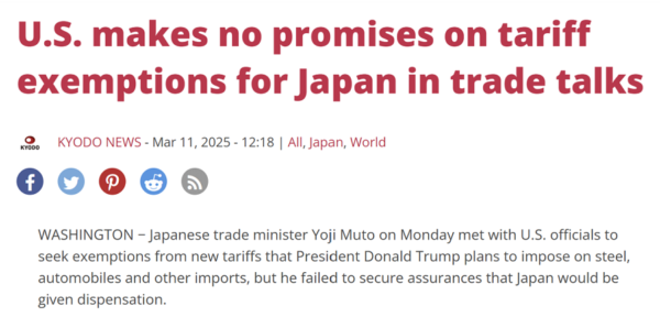 鉄鋼、アルミニウム、そして自動車関税を免除してくれと要請したが事実上拒絶