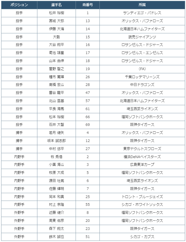 3月開催予定の「2026 WORLD BASEBALL CLASSIC™」に出場予定の侍ジャパン選手につきまして、決定した選手(29名)をお知らせします。残りの1名は決まり次第お知らせします。