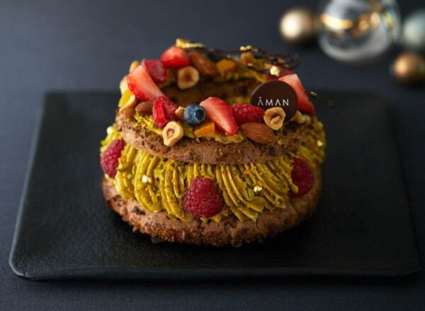 「アマン東京」のピスタチオのパリブレストです香ばしく香り豊かなピスタチオのバタークリーム。ほろ苦いビターチョコレートのカスタード。ナッツやフルーツで華やかに。クリスマスに特別な気分になれるやつ。 pic.twitter.com/KK0utn2NCY