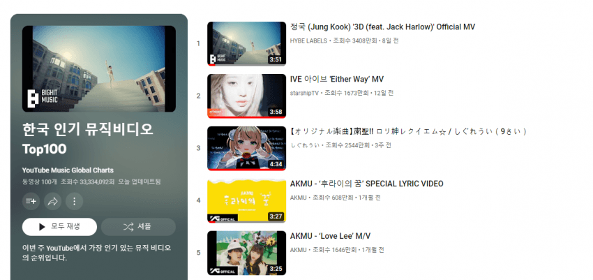 韓国人「韓国は終わった・・・日本のあの曲が国内YouTube人気MVで9位に」→「これ今世界ランキング36位である・・・」「やはり日本はいつも先を行くよ」 “大韓民国YouTube人気ミュージックビデオ9位” 韓国は終わった・・・ 安心しろ、日本では4位だ ...